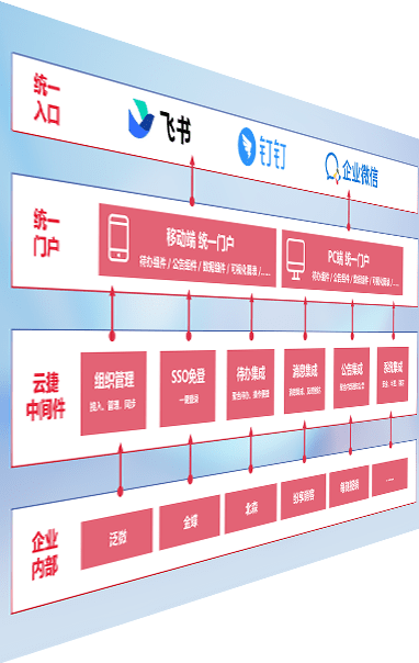 对协作平台提供支持服务,,,,支持企业应用与协作平台对接,,,,包含组织同步、、、、消息集成、、、待办集成等。。。支持目前主流的协作平台:钉钉、、、企微和飞书。。